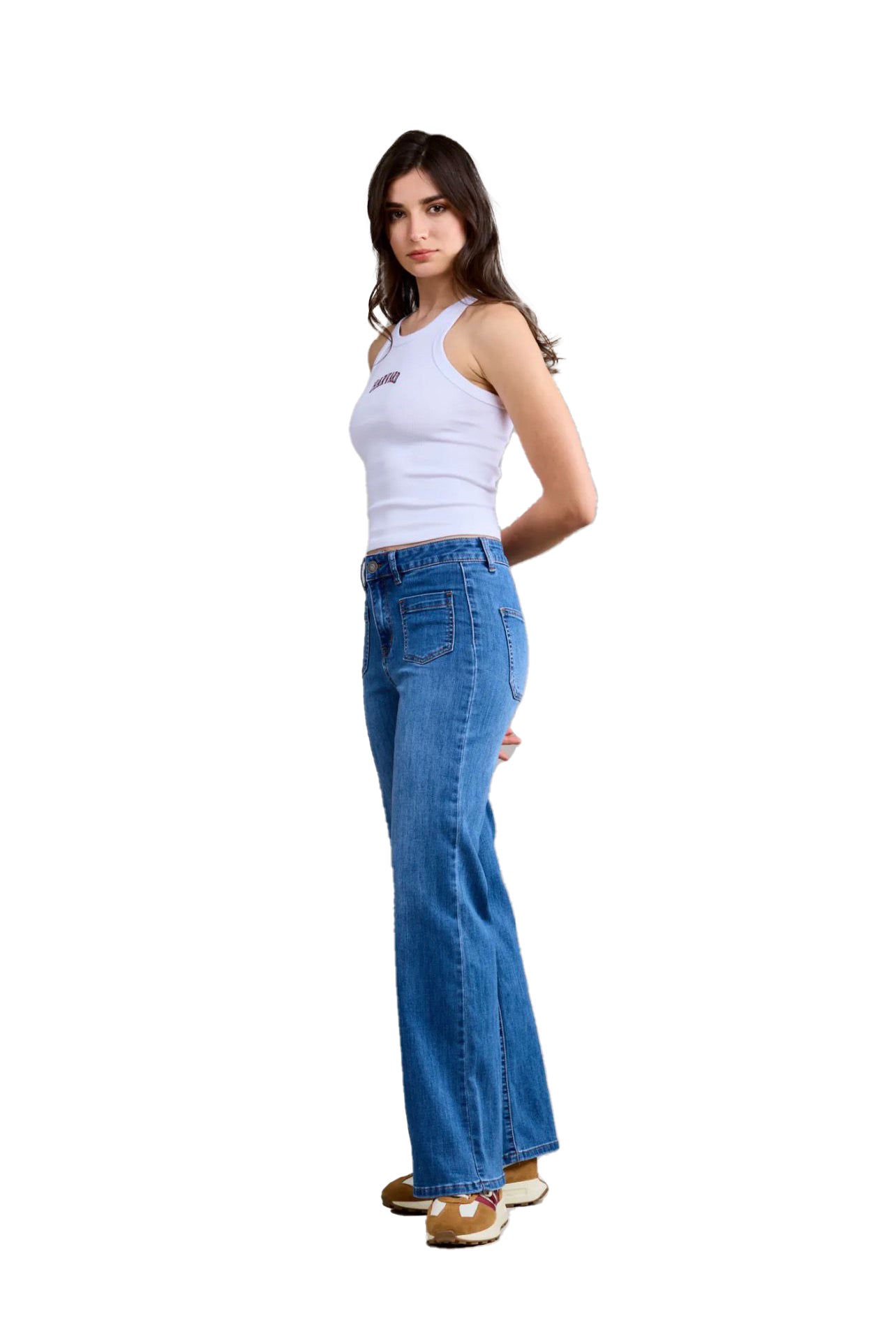 Toxik3 H2747-2 Super Stretch Wide Leg Jeans - Mid Blue