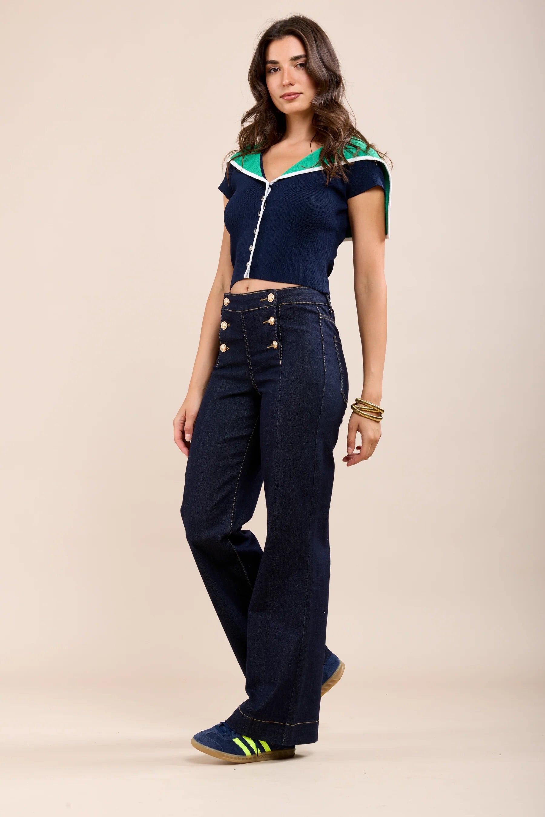 Toxik3 L21447-1 High Waist Flare Button Jeans - Blue Jeans Raw